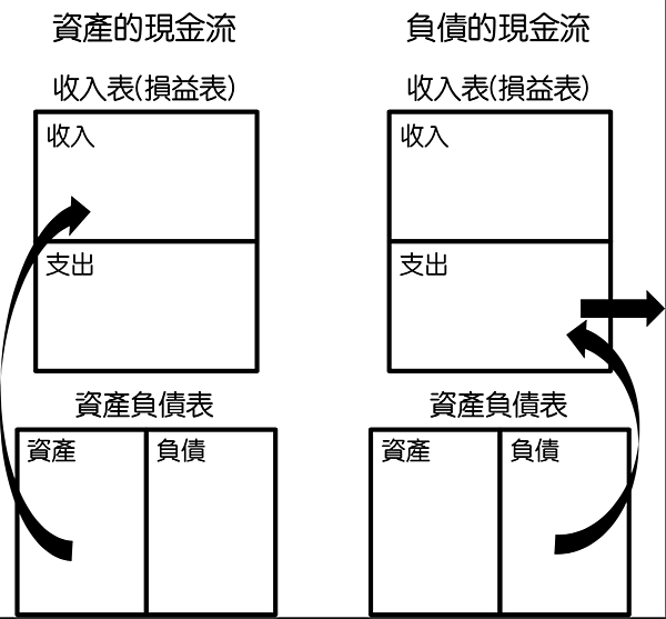 財富是將資產欄所產生的現金流,與支出來所流出的現金流進行比較而定的。