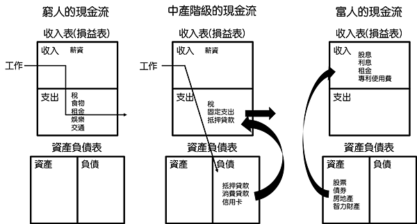 那再來看看窮人、中產階級及富人現金流的差異吧。